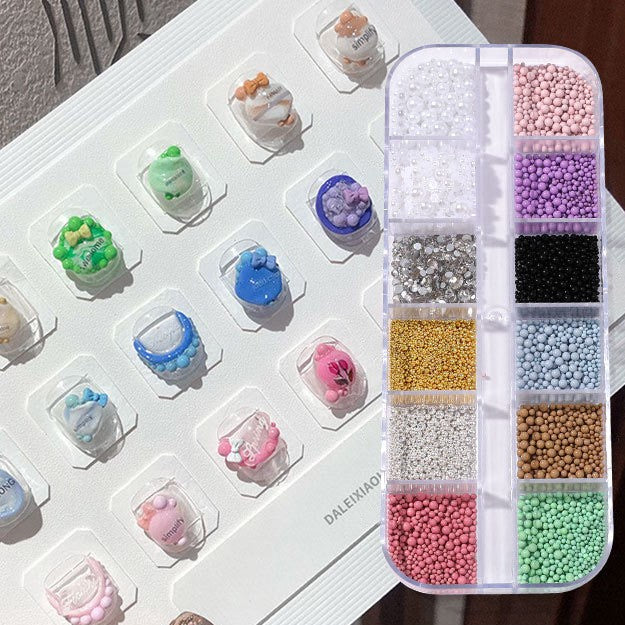 12 Grids Assorted Color Bead Ball Nail Accessories