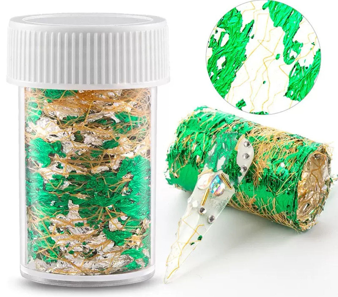 Decal Foil Mesh Nail Art Line - Green Silver