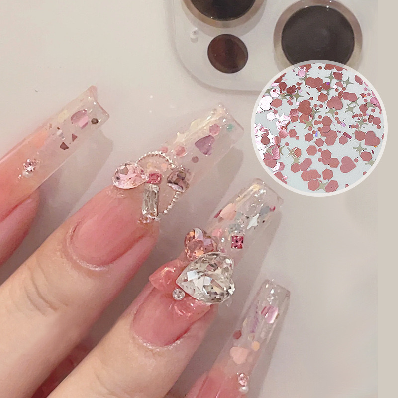 Heart Shape Glitter Flake - Rose Pink